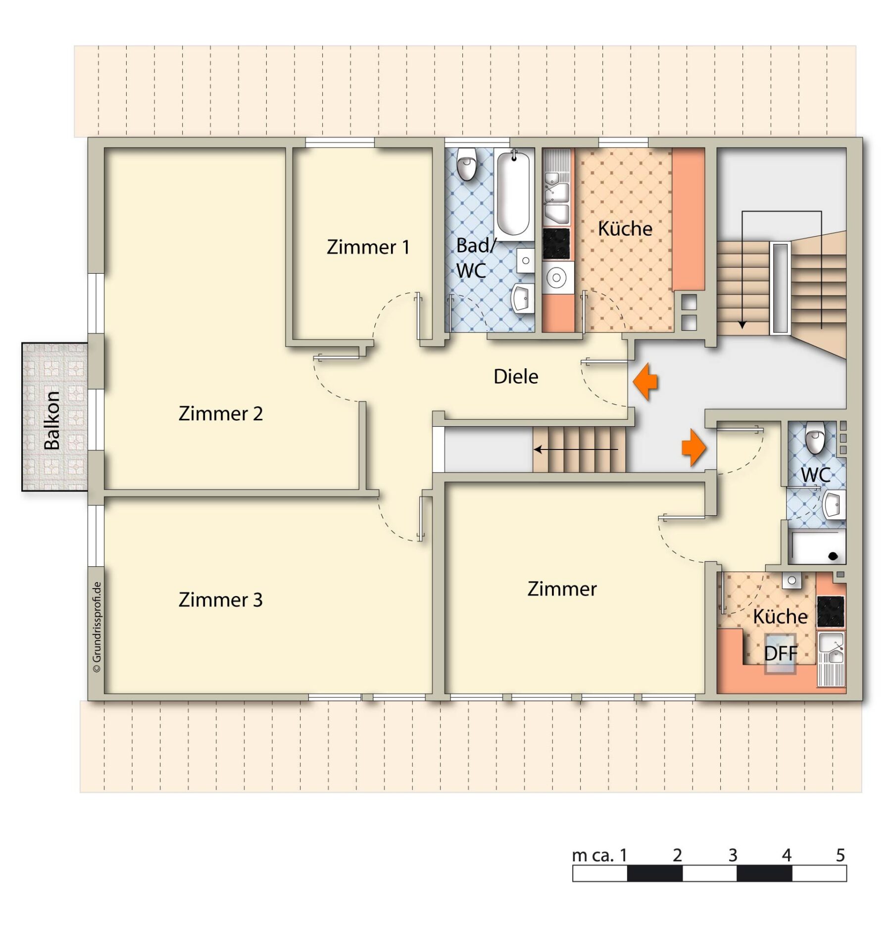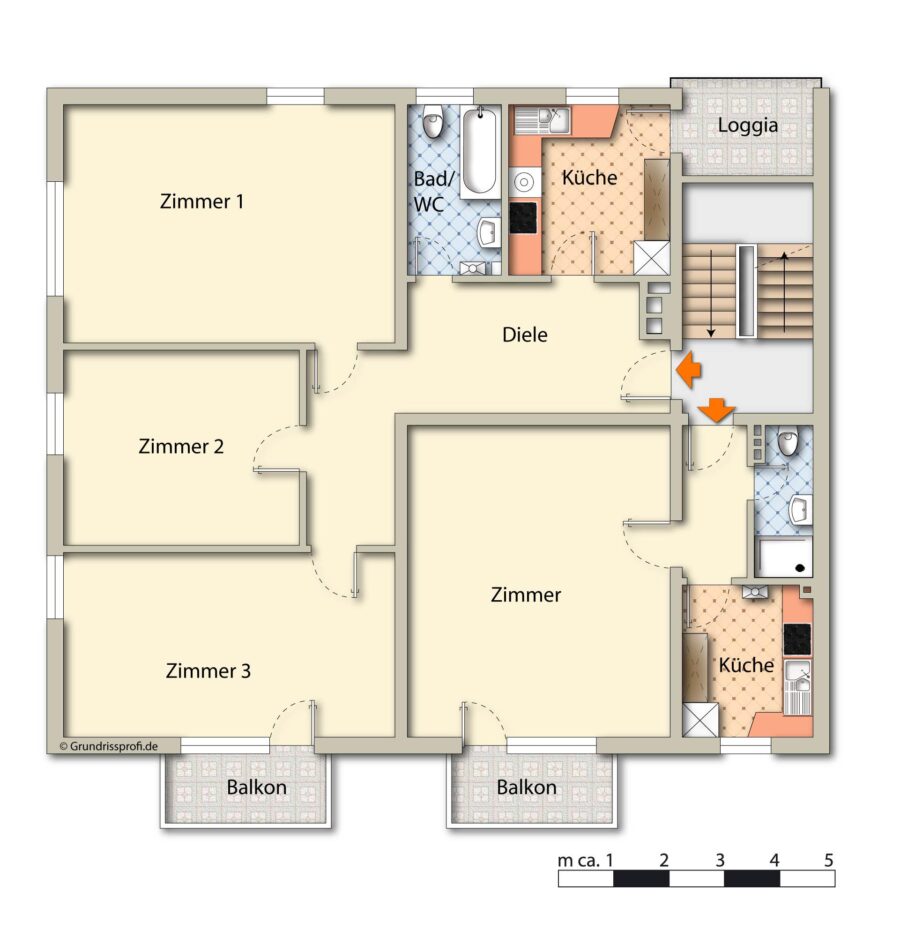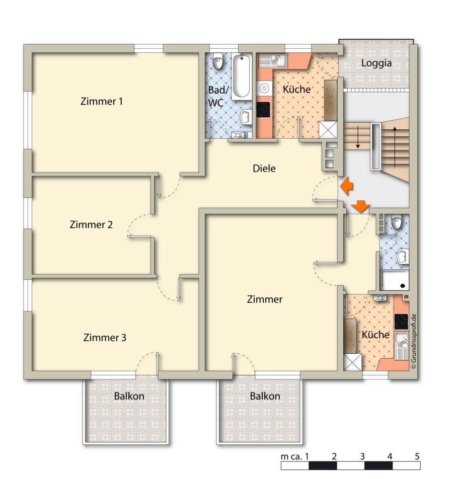 Die derzeitige Jahresnettokaltmiete beläuft sich auf ca. 71.625 €. Die Soll-Miete gemäß Mietspiegel liegt bei knapp 90.000 €.